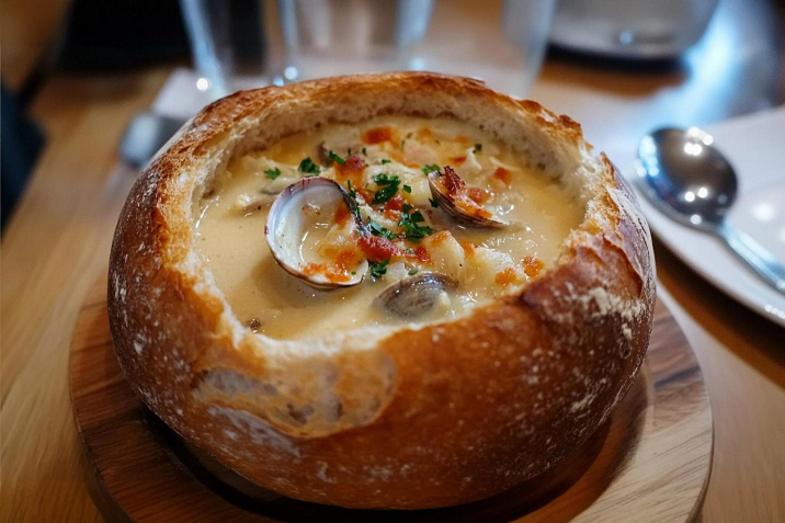 1. Clam Chowder. Considerata la specialità per eccellenza di San Francisco, questa zuppa cremosa a base di vongole, patate e panna viene servita in una ciotola di pane. Un piatto perfetto per i giorni freschi, che puoi gustare nei ristoranti di Fisherman’s Wharf, con tanto di vista panoramica sull’oceano.