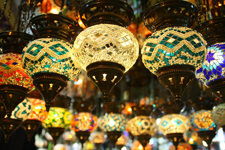 – Lampade. Le lampade turche sono tra gli oggetti ornamentali più famosi di questo Paese. Realizzate a mano, con vetri colorati e struttura in ottone, creano giochi di luce affascinanti e regalano calore all’ambiente. Troverai modelli da tavolo, da parete o a sospensione.